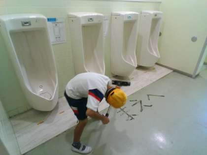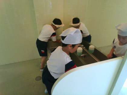 子供たちは、毎日掃除を頑張っています。トイレ掃除を担当している子供たちは、手洗い場や床だけでなく、便器の周り等の汚れが目立つ場所もきれいにしようと、熱心に清掃活動に取り組んでいました。