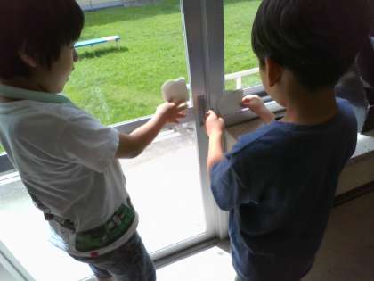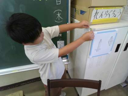 算数科「三角形と四角形」の学習では、かどの形を調べ、直角について知りました。身の回りにあるものの中から、直角をたくさん見付けました。