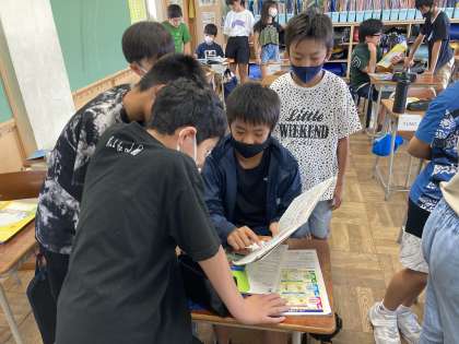今日は、自分で決めたテーマについて調べたことを紹介しました。資料をもとにし、疑問をもったり、そこから疑問を追求したりしたことをまとめて伝えました。