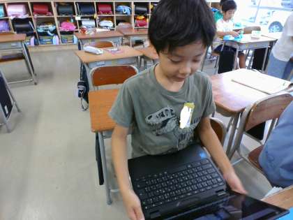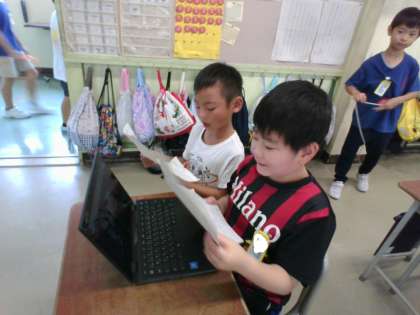 学習発表会で使う歌をクラスルームにアップしてあるのですが、歌詞を見て一緒に歌っています。