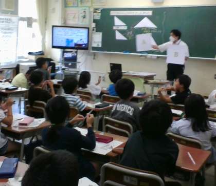 今日は、4組に富山市内の教員が集まって算数の授業が行われました。2年生代表として4組が授業を公開しました。