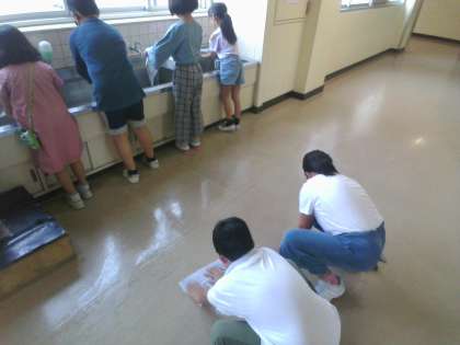 3年生は、図工の時間に水彩絵具を使いました。水彩絵具を使ったクラスが多かったため、片付けが混雑して廊下が汚れてしまいました。しかし、汚れを発見した人が自主的にぞうきんを準備し、ぞうきん隊として廊下を掃除してくれました!前より廊下がピカピカです!ありがとう!