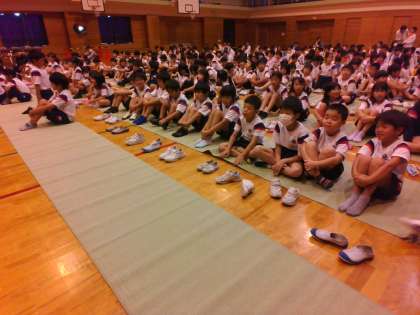 2年生は、1年生と3年生の発表を体育館で見ました。