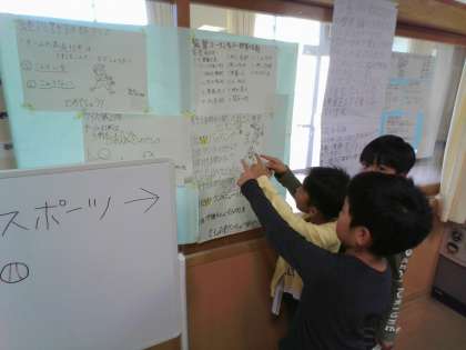 6年生が総合的な学習の時間に調べた「蜷川小学校の歴史」を見学しました。学校のことや蜷川カープのこと等をたくさん学ぶことができて、とても楽しそうでした。