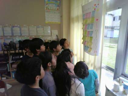 昨日の校内発表会は一人一人がとてもがんばっていました。今日は4年生と6年生から感謝と励ましのメッセージをいただきました。このメッセージを見て子供たちは、さらにやる気が高まったようです。