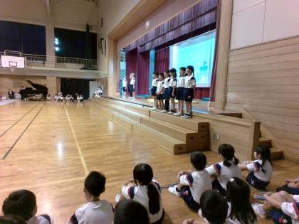 にこきらパワーをたくさん集めて、最後には2年生みんなでボディーパーカッションを行いました。みんなで心を合わせてがんばりました。