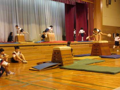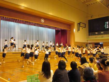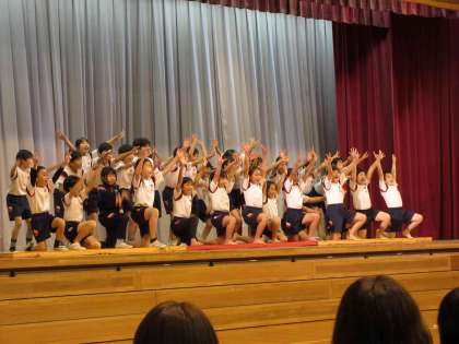 演技が始まる前は緊張気味の子供たちでしたが、最後のダンスが終わった時には笑顔いっぱいでした。今日の発表に向けて練習を続けてきたことで、「マット運動の技がきれいにできるようになってうれしかった」「自信をもって跳び箱を跳べるようになった」「3回しか跳べなかった二重跳びを30回跳べるようになった」とうれしそうに話していました。一人一人が本当によくがんばっていました。