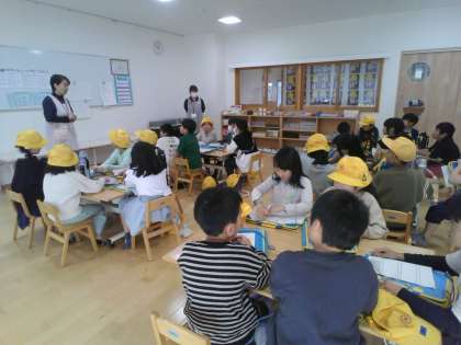 生活科の学習で2回目の町探検に行ってきました。水色コースは、いちい保育園とマルサムに訪問しました。子供たちは、お話を真剣に聞き、たくさん質問もしていました。