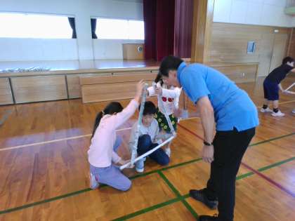 グループで協力してきりんや馬の形を作って動かし、みんな夢中で楽しんでいました。