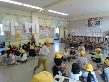 バザーの準備のあとに(2年生) 公開日 2023/11/02 更新日 2023/11/02 2年生 5日のバザーで教室を使うので、机を全部下げました。 空いたスペースで遊びたいということで、ハンカチ落としをしました。