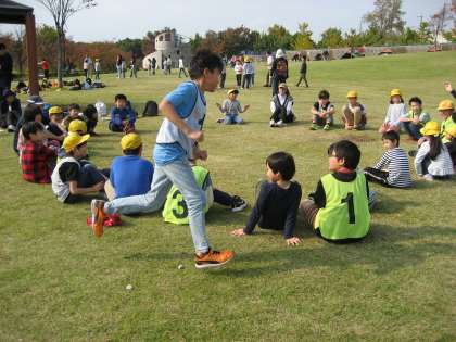 11月2日(木)さわやかな秋空のもと、ふたば級・こばと級の子供たちはバスに乗って遠足に出かけました。稲荷公園では、グループごとに鬼ごっこやアスレチックを楽しみ、全員でハンカチ落としもしました。全力で走って追いかけるハンカチ落としは、迫力満点、ハラハラドキドキの展開でした。