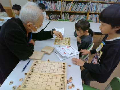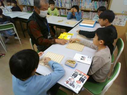 将棋グループでは、駒の並べ方や動かし方、基本的なルール等を教えていただきました。経験者の子供たちは、詰将棋を教えていただきました。手作りの将棋の本までいただけて、子供たちは大満足でした。