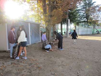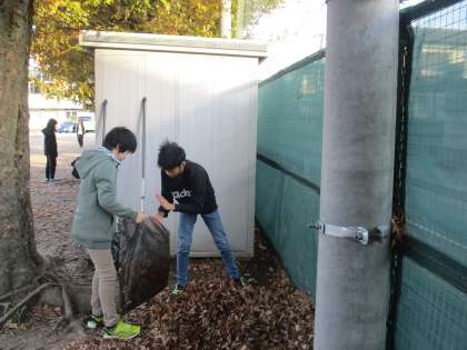 秋も深まり、落ち葉の季節となりました。学校のグラウンドにはたくさんの落ち葉が見られます。子供たちによびかけたところ、ボランティア委員会の子供やたくさんの蜷川っ子が落ち葉掃きに出てきてくれました。朝から、気持ちの良いスタートです。みんなのために働いてくれたみなさん、ありがとう!