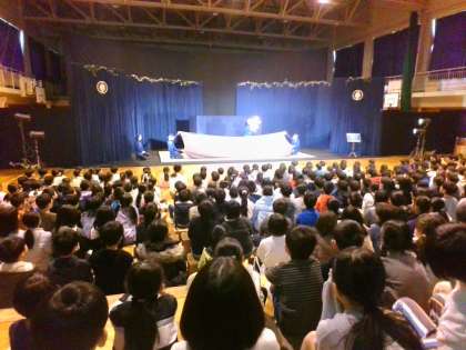 3年生は10月に新聞紙とボールを使ったアニメイム(アニメーション+パントマイム)の体験をしており、劇団の方のステージをとても楽しみにしていました。