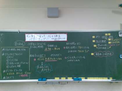 今日は学校保健委員会がありました。保健委員会や学校医の押田先生から睡眠についてのお話がありました。子供たちは睡眠の大切を学び、「毎日同じ時間に寝て、起きるようにしたい」「学習をいっぱいして、早く寝ると記憶力がアップするからやってみたい」と分かったことやこれからがんばりたいことを話したり、振り返りに書いたりしていました。