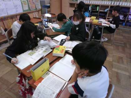 3年生では、ことわざや故事成語の学習をしています。今日は国語辞典を使ってことわざの意味を調べました。「“さるも木から落ちる”って聞いたことがあったけど、こんな意味だったのか」「もっとたくさんのことわざをしらべてみたいな」という声が聞こえてきました。