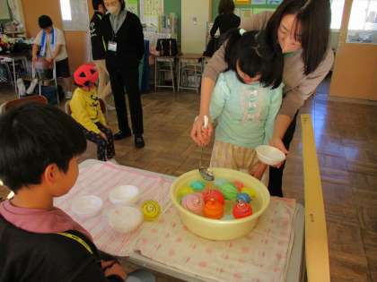 今日は、子供たちが考えたボーリングやワニワニパニック、ヨーヨーつり等をしました。みんなが楽しめるように、子供たちはゲームに取り組む順番を考えたり、うまくできたら拍手し合ったりして、思いやりや工夫が満載でした。また、一緒に学習したり活動したりする日が楽しみです。