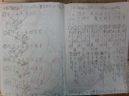2学期の学習のたしかめに向けて、復習を取り入れている子供も多いです。目当てをもち、振り返りをする中で、次の課題をもつ子供もいます。