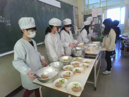 今日は、選択献立の給食メニューでした。子供たちは、自分で選んだおかずとデザートをおいしそうに食べていました。