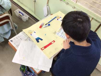 図工では自分の忘れられない気持ちを絵に表しています。宿泊学習のことや学習発表会のことなど、思い思いの忘れられない気持ちを表そうと、構図や色の選び方等を工夫しています。