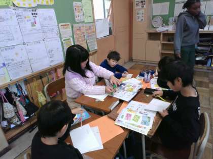 今日は外国語活動の時間にクリスマスパーティーのChristmas cardを作りました。