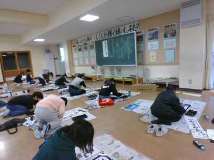仮名文字の「な」に少し苦戦していますが、元気にのびのび書いています。