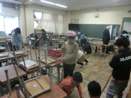 2学期終業式でした。子供たちは、自分のロッカーや机・椅子の脚をきれいにしたり、担当場所を丁寧に清掃したりしていました。