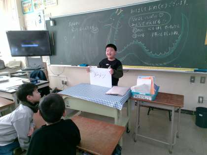3学期がはじまり、久しぶりに会えた友達と楽しそうに話す姿がたくさん見られました。学級活動の時間には2年生おみくじをひいて楽しんだり、みんなでゲームをしたりしました。「冬休み食べたものでおいしかったものクイズ」では、クイズの出題者にたくさん質問しながら考えました。冬休みの楽しかった話を思い出しながらみんなで楽しみました。