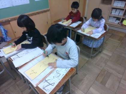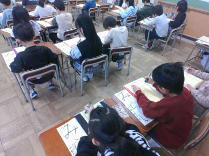 初めての書初大会でした。静かに、緊張感漂う中、練習の成果を「みらい」の文字に込めました。