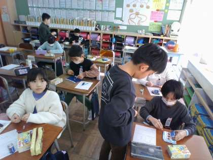 豆電球に明かりをつけるためには、どのようなつなげ方をすればよいのか、さまざまなつなぎ方を試し、明かりがつくためのきまりを見つける学習を行いました。