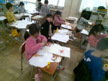 図画工作科の学習では、紙版画で「自分の心にいるおにさん(苦手や不安、頑張ろうと思っていること)」を表現する紙版画に挑戦しています。顔の形やパーツの向き、大きさなどこだわりを持って、工夫し版を作ってみています。素敵な版画になりそうです!版画ができる頃には本当に苦手も克服できるかもしれませんね!