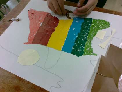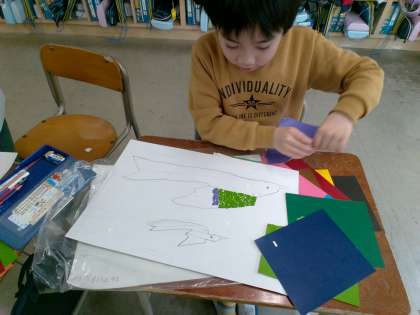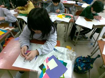 図工 カラー紙版画 (2年生)
