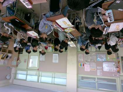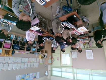 鍵盤ハーモニカで「こぐまの2月」を練習しています。2パートに分かれて一緒に演奏できるようにがんばっていました。