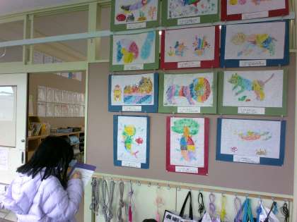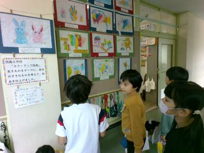 今まで図画工作科の時間に作っていたカラー版画が完成しました。今日は、友達の作品を見合い、すてきなところをたくさん見つけました。