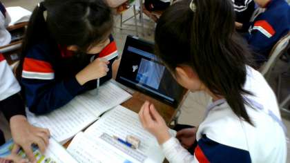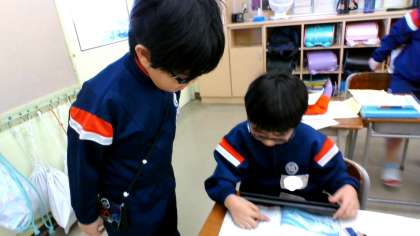 「スーホの白い馬」では、物語を読み取って、自分の心が動かされたところを話し合う学習をしています。友達と意見を交流しながら進めています。