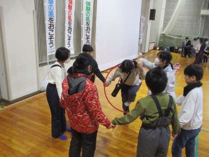 5年生は、国立立山青少年自然の家へ行ってきました。あいにくの天気で、今日は、館内での活動になりましたが、人間知恵の輪をしたり、ボール渡しをしたりするなどし、グループで協力しながら活動を楽しみました。友達同士で声をかけ合う姿が多く見られ、活動を通してより仲を深められたのではないかなと思う一日となりました。