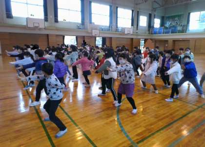 卒業を祝う会の出し物練習をしています。「ありがとう」「おめでとう」の気持ちが伝わるようにエールを送ります!