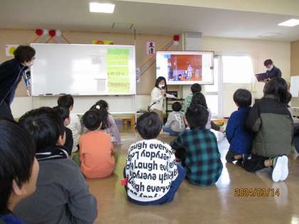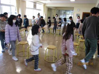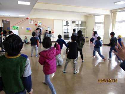 みんなの大好きな、ハンカチ落としやだるまさんが転んだ等で思いっきり楽しみ、最後に心を込めて書いた手紙を渡しました。在校生はそれぞれの役割で一生懸命準備して、工夫を凝らした会になり、とても楽しいひとときでした。