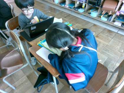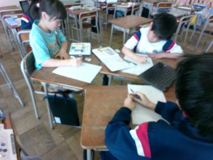 理科で見つけた植物や生き物を観察カードにかきました。「ダンゴムシの足って思ったよりたくさんあるな」「花びらの色が少しずつ変わっていておもしろい」などたくさん気付いたこと、考えたことを書いていました。