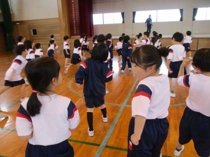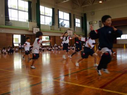 体育館で体ほぐしやスタートダッシュの練習をしました。