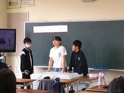 6年生では、運動会の色団ごとに集まって、団のスローガンについて話し合いました。昨年度のスローガンを参考にしながら、団長、副団長、応援団長、応援副団長が中心となって一生懸命意見をまとめていました。
