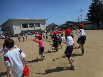 2年生さんと合同練習でした。2年生さんには、「ここですわるよ」「なげるよ」等、いろいろなアドバイスをもらい、大変お世話になりました。子供たちも、2年生さんに教えてもらって、うれしかったようです。