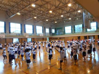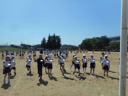 2年生の子供たちは、体育館やグラウンドで、1年生と一緒に玉入れの練習に取り組んでいます。1年生に玉を手渡してあげたり、並ぶときに声をかけたりと、やさしい姿がたくさん見られました。