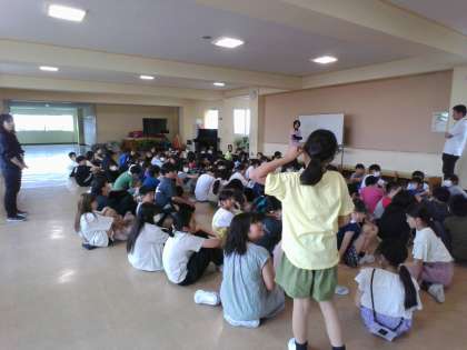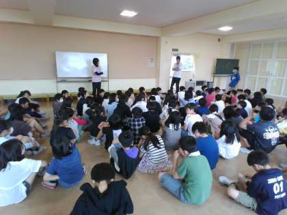 運動会本番に向けて、学年全体で団体競技への取り組み方を確認しました。