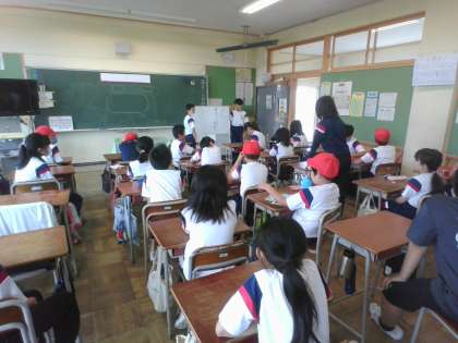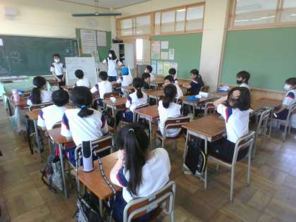 運動会で行う団体競技「一致団結!全力タイヤ引き」に向けて、色団ごとに作戦タイムの時間をとりました。本番が近づき、気合いが入ってきました。