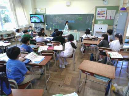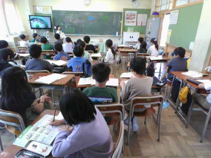 算数科では「わり算」の学習を進めています。友達と考えを伝え合ったり、黒板を使って自分の考えをみんなに発表したりして、みんなで考えを深めました。