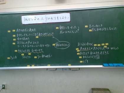 今日は1時間目に運動会の解団式がありました。その後、学級で運動会の振り返りも行いました。「負けそうになっても最後まで一生懸命走りきった」「応援の声がだんだん大きく、自信をもってできるようになった」など自分たちの頑張れたことを振り返りました。