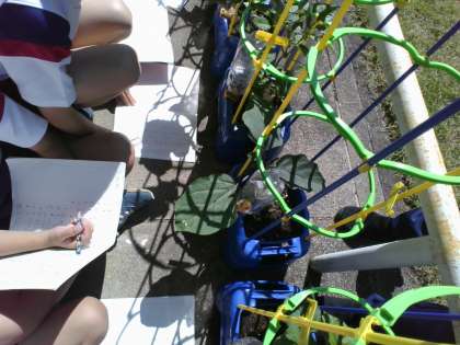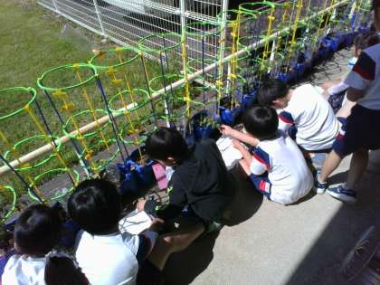 苗植えから2週間がたちました。茎や葉の様子も変わってきたようです。子供たちは、どのように成長しているかをじっくり観察して、記録していました。