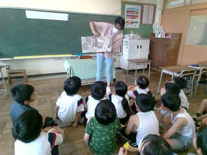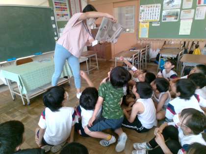 今日は読み聞かせでした。4組では「あーっとかたづけ」「だれのパンツ」を読んでいただきました。どれもおもしろいお話で子供たちは楽しそうに聞いていました。