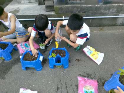 ホウセンカの種を植えてからずいぶんたちました。大きくなってきたので今日は鉢に植えかえました。丁寧に取り出し、折れないように気を付けて植えかえ、たっぷりと水をやりました。大きく育つといいです。